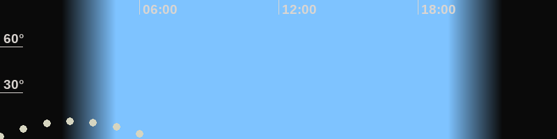 Monduntergang06:39 Uhr im Südwesten (αAz = 223.8°)