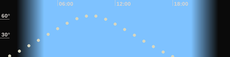Höchster Stand (Kulmination)09:23 Uhr (h=65.5°)
