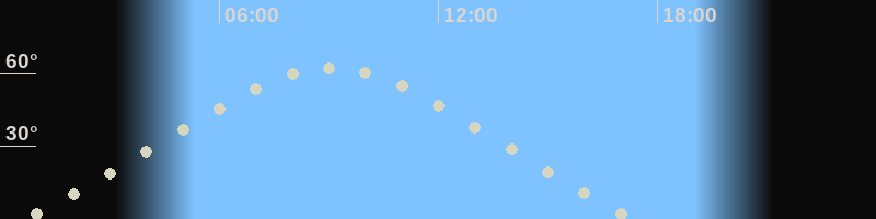 Höchster Stand (Kulmination)09:04 Uhr (h=62.4°)