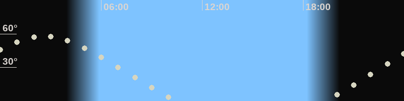 Höchster Stand (Kulmination)02:31 Uhr (h=57.6°)