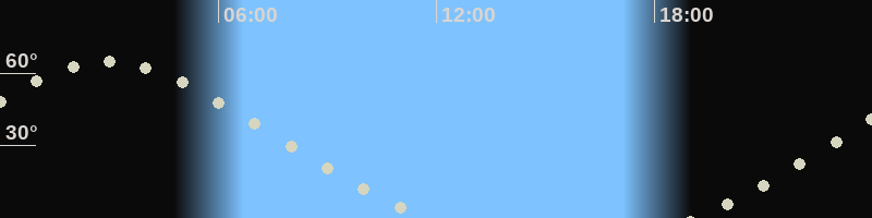 Höchster Stand (Kulmination)02:56 Uhr (h=64.7°)