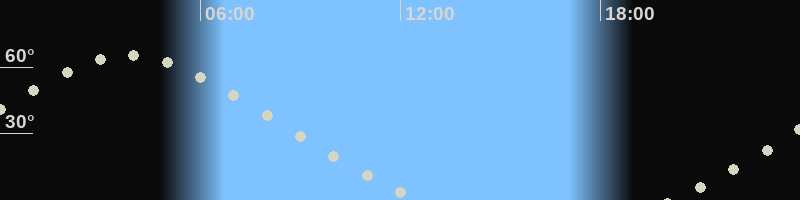 Höchster Stand (Kulmination)03:49 Uhr (h=65.1°)