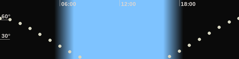 Höchster Stand (Kulmination)00:00 Uhr, (h=62.1°)