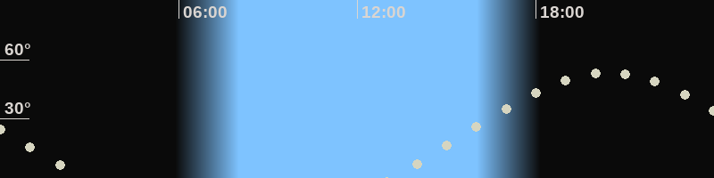 Höchster Stand (Kulmination)20:22 Uhr (h=53.1°)