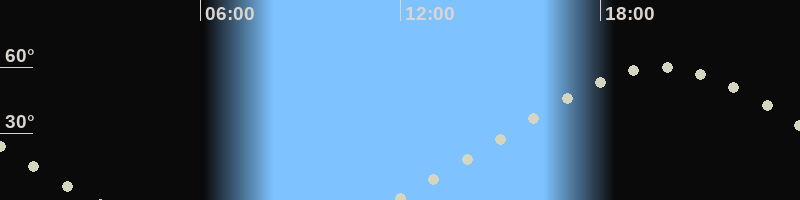 Höchster Stand (Kulmination)19:45 Uhr (h=59.7°)