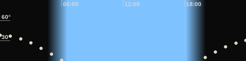 Höchster Stand (Kulmination)00:07 Uhr, (h=38.7°)