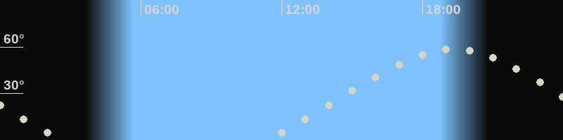 Mondaufgang11:13 Uhr im Nordosten (αAz = 55.9°)