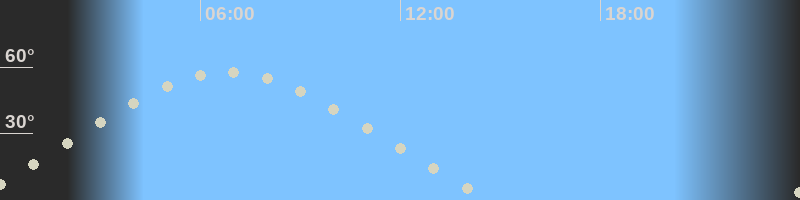 Höchster Stand (Kulmination)06:46 Uhr (h=57.4°)