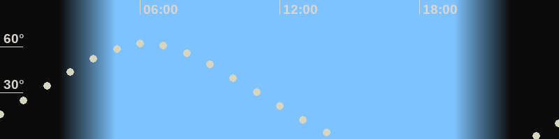 Höchster Stand (Kulmination)06:13 Uhr (h=62.1°)