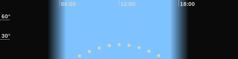 Höchster Stand (Kulmination)12:05 Uhr (h=22.2°)