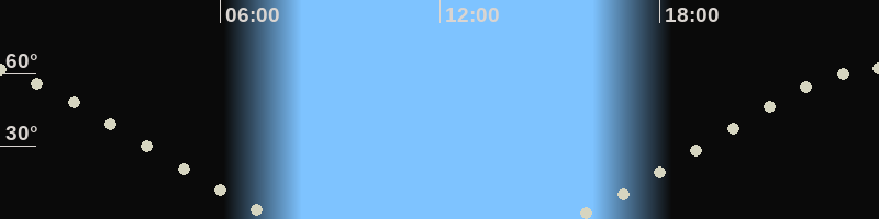 Höchster Stand (Kulmination)23:56 Uhr (h=62.2°)