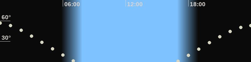 Höchster Stand (Kulmination)00:15 Uhr, (h=53.5°)