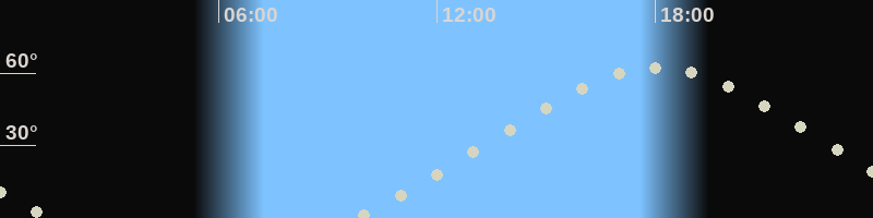 Höchster Stand (Kulmination)18:00 Uhr (h=62.1°)