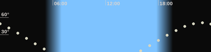 Monduntergang05:39 Uhr im Nordwesten (αAz = 294.4°)