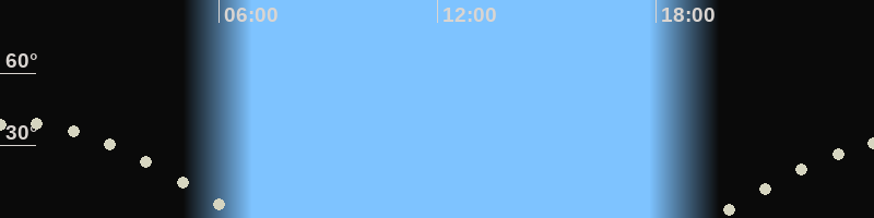 Mondaufgang19:27 Uhr im Osten (αAz = 95.7°)