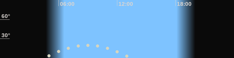 Höchster Stand (Kulmination)08:52 Uhr (h=19.8°)