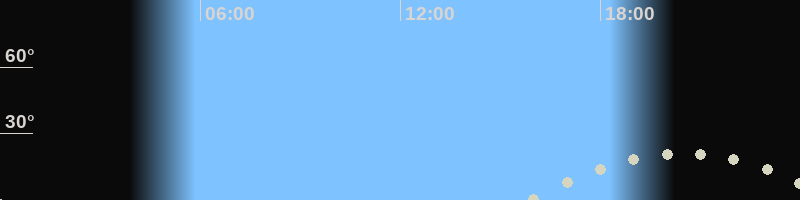 Monduntergang23:45 Uhr im Südwesten (αAz = 236.5°)