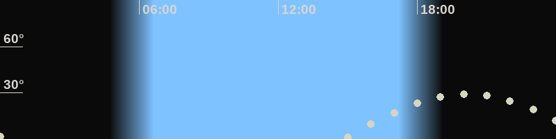 Monduntergang00:12 Uhr im Westen (αAz = 248.6°)