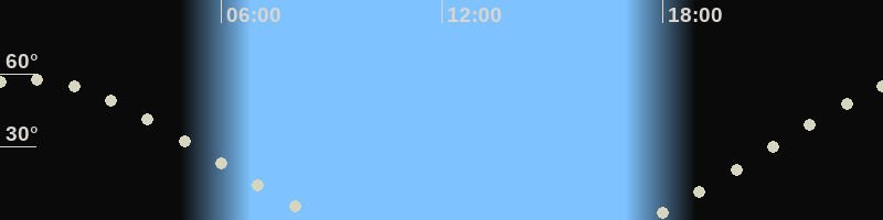 Höchster Stand (Kulmination)00:45 Uhr, (h=57.8°)