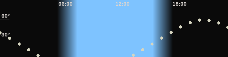 Höchster Stand (Kulmination)21:25 Uhr (h=58.6°)