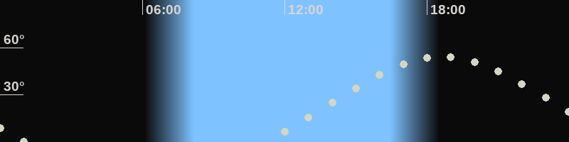 Höchster Stand (Kulmination)18:35 Uhr (h=54.3°)