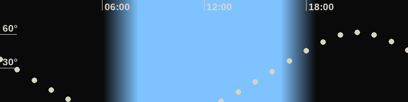 Höchster Stand (Kulmination)20:59 Uhr (h=61.5°)