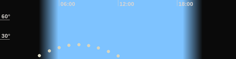 Höchster Stand (Kulmination)07:50 Uhr (h=21.9°)