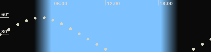 Höchster Stand (Kulmination)04:32 Uhr (h=59.6°)