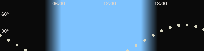 Höchster Stand (Kulmination)21:32 Uhr (h=46.1°)
