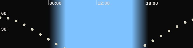 Höchster Stand (Kulmination)00:09 Uhr, (h=57.5°)