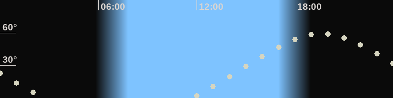 Höchster Stand (Kulmination)19:36 Uhr (h=59.2°)