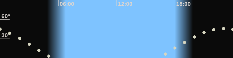 Höchster Stand (Kulmination)23:03 Uhr (h=46.2°)