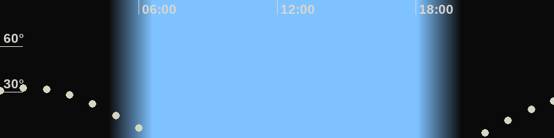 Höchster Stand (Kulmination)01:09 Uhr (h=33.2°)