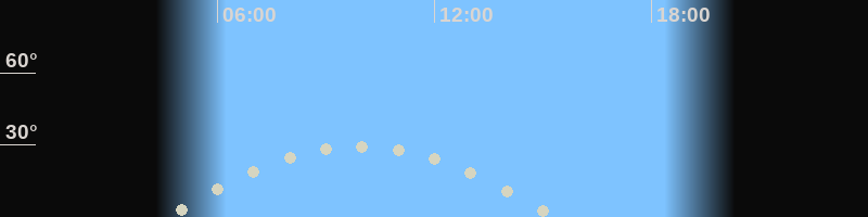 Höchster Stand (Kulmination)09:50 Uhr (h=29.2°)
