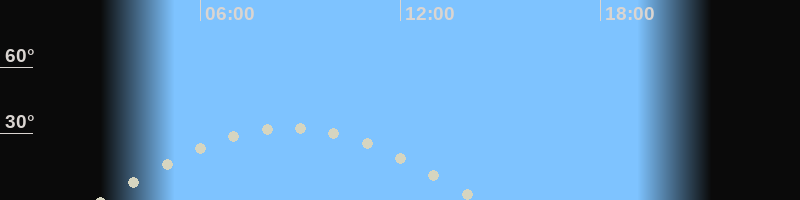 Höchster Stand (Kulmination)08:34 Uhr (h=32.3°)