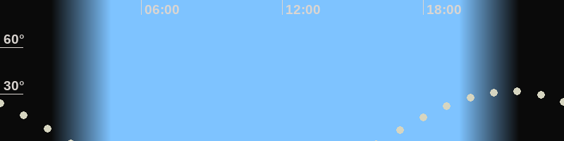 Monduntergang02:54 Uhr im Westen (αAz = 264.5°)