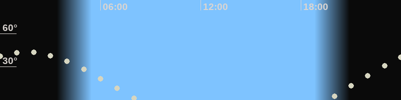 Höchster Stand (Kulmination)01:29 Uhr (h=43.1°)