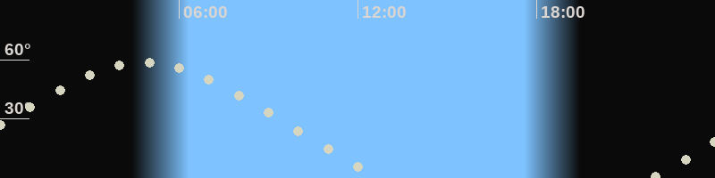 Höchster Stand (Kulmination)04:49 Uhr (h=58.6°)