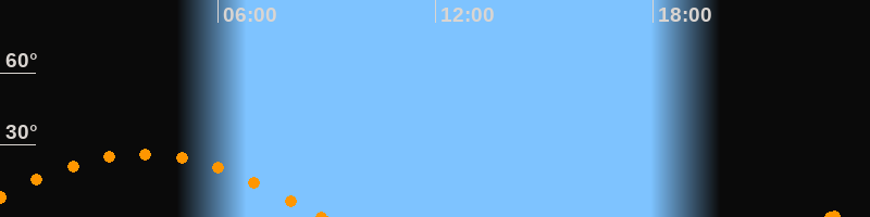 Höchster Stand (Kulmination)03:54 Uhr (h = 26.1°)