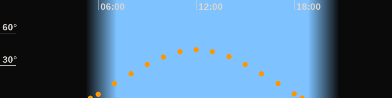 Höchster Stand (Kulmination)12:01 Uhr (h = 44.4°)