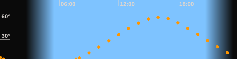 Höchster Stand (Kulmination)16:01 Uhr (h = 63.9°)
