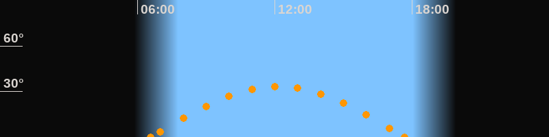 Höchster Stand (Kulmination)12:08 Uhr (h = 33.3°)
