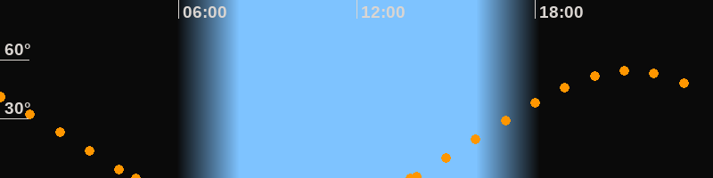 Höchster Stand (Kulmination)21:09 Uhr (h = 54.6°)