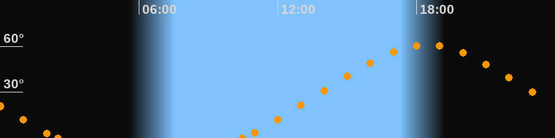 Höchster Stand (Kulmination)18:26 Uhr (h = 60.8°)
