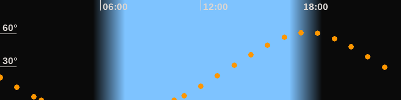Höchster Stand (Kulmination)18:24 Uhr (h = 60.9°)