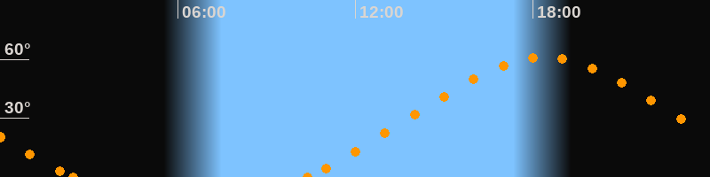 Höchster Stand (Kulmination)18:22 Uhr (h = 61.1°)