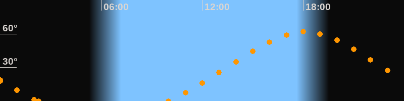 Höchster Stand (Kulmination)18:06 Uhr (h = 62°)