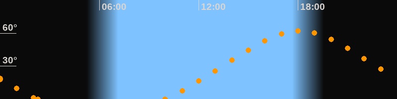Höchster Stand (Kulmination)18:04 Uhr (h = 62.1°)