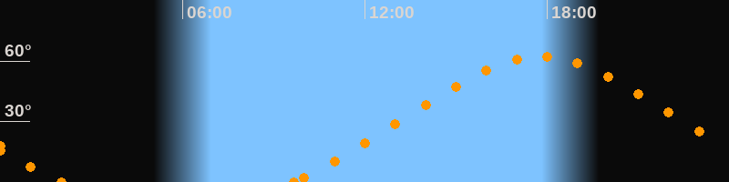 Höchster Stand (Kulmination)17:47 Uhr (h = 62.3°)