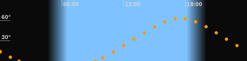 Höchster Stand (Kulmination)17:29 Uhr (h = 63.2°)